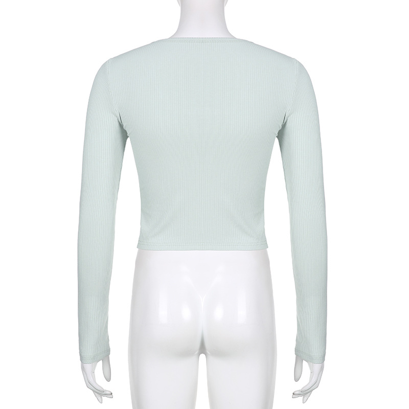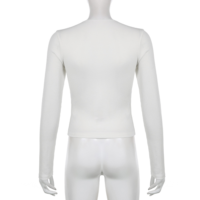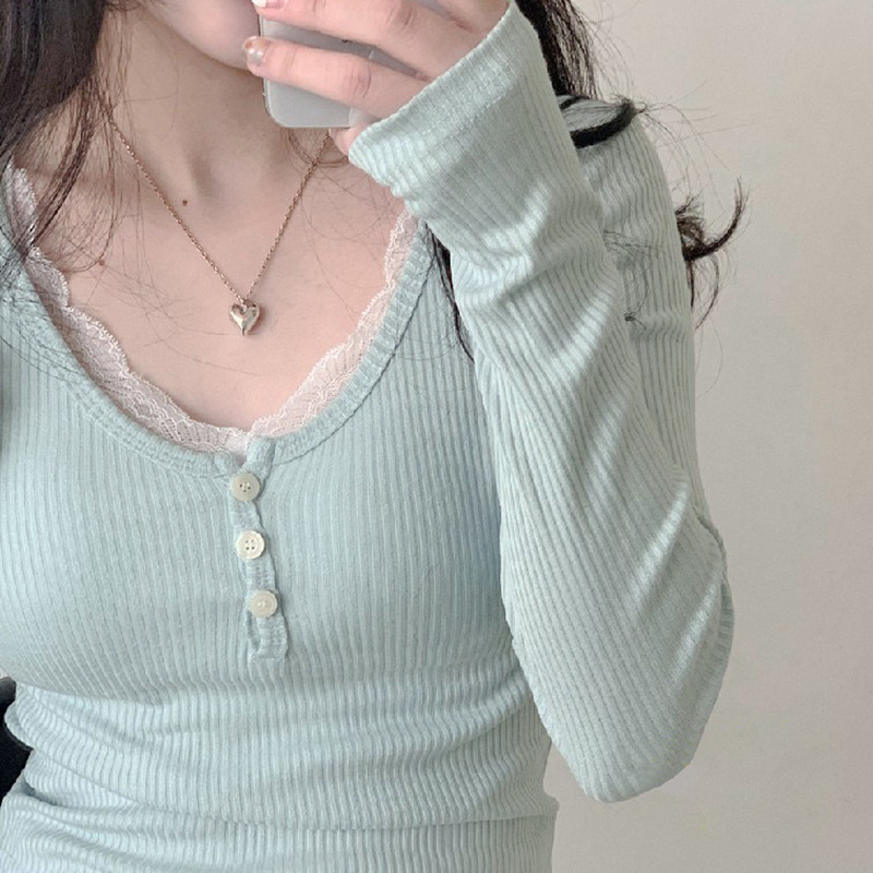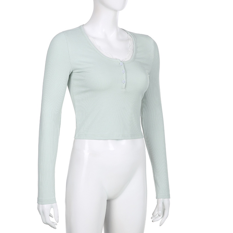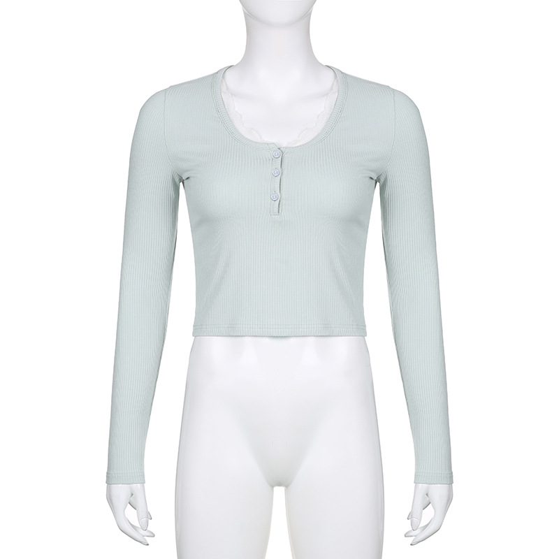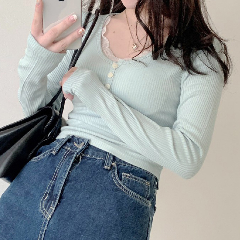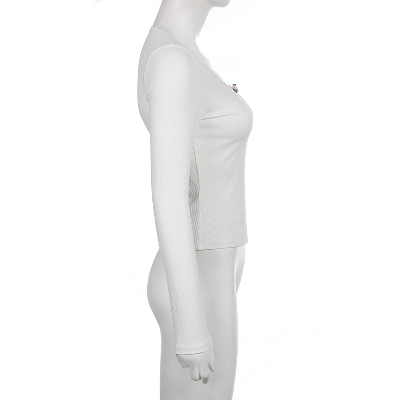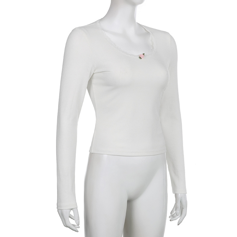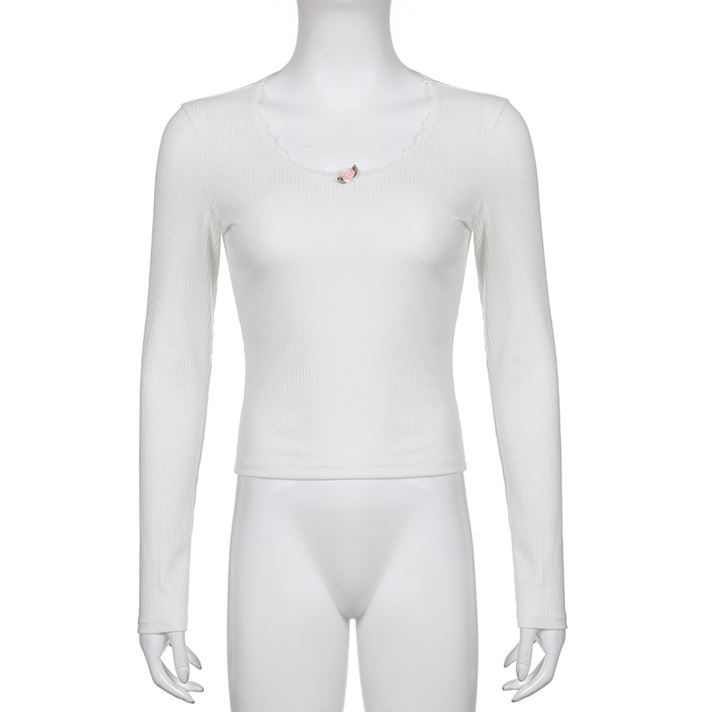 Elevate your autumn and winter wardrobe with the FlexElevate Y2K Lace Trim Knitted Crop Top. This cute and chic long sleeve V-neck T-shirt combines Korean and Harajuku fashion elements to bring you a stylish pullover for the new season.